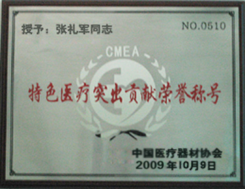特色醫(yī)療突出貢獻(xiàn)榮譽稱號
